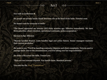 Solve contract disputes, navigate a murder investigation, and weigh between justice, crime, and guilt... all while deciding how far you're willing to go to keep your position.